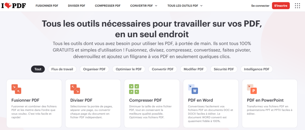 iLovePDF propose une suite d’outils en ligne pour fusionner, convertir, compresser ou modifier des fichiers PDF sans installation logicielle.
