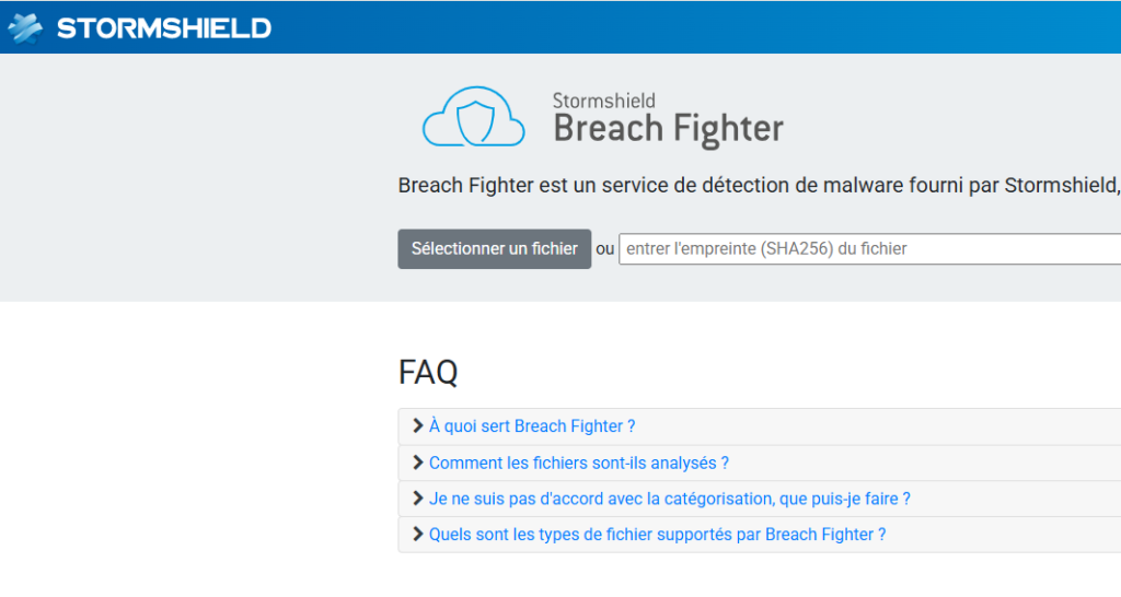 Breach Fighter est un outil d’analyse sandboxing développé par Stormshield. Il s’appuie sur les produits Stormshield Endpoint Security et les recherches de leur équipe Security Intelligence pour détecter des comportements malveillants dans les fichiers analysés.